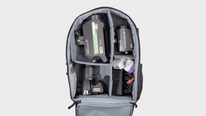 Adapt to your needs wherever you go with a full-sized camera compartment designed to accommodate DSLRs, mirrorless cameras, drones, and lenses of all sizes.